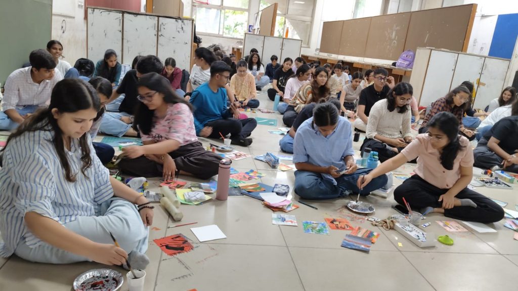 IAPNU welcomed the first-semester students of B.Arch. and planned a two-week Orientation Programme from August 19-30, 2025 to expose students to the courses, curriculum, hands-on workshops, and guest lectures that helped them gauge the pedagogy of architectural education as well as the learning environment, university infrastructure and student life on the campus. Dr. Aparna and Prof. Krishna Yadav coordinated the programme. Each day, a series of lectures, workshops and on & off-campus visits helped the students understand the use of different media, materials, techniques and creative explorations through the artwork and sculptures they produced. The lectures and workshops on various topics like Fun with Colors, Clay workshop, Model-making and a Sketching trip are shown in the image. These workshops helped students to start discovering their skills and potential for this course. A mix of IAPNU faculty and experts took each session. Orientation programme was organized in different venues of C Block where students simultaneously explored the campus and the need for the workshop. Also, an exhibition of the works produced during the orientation was opened for August 29-30 in one of the First year studios.